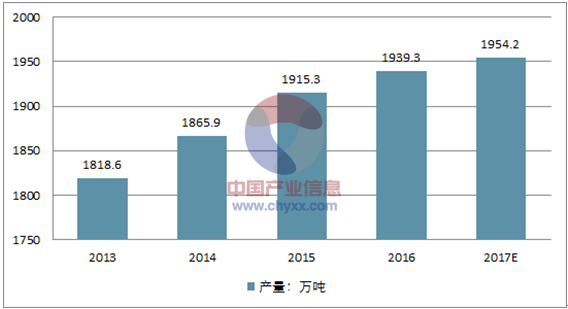 奶酪是牛奶经浓缩,发酵而成的奶制品,它基本上排除了牛奶中大量的水分,保留了其中营养价值极高的精华部分,被誉为乳品中的“黄金”。据美国农业部发布的最新报告显示,近年来,全球奶酪产量逐年上升,2013到2016年年均复合增长率为2.17%,预计2017年全球奶酪产量将超过1950万吨,较2016年增加14.9万吨。