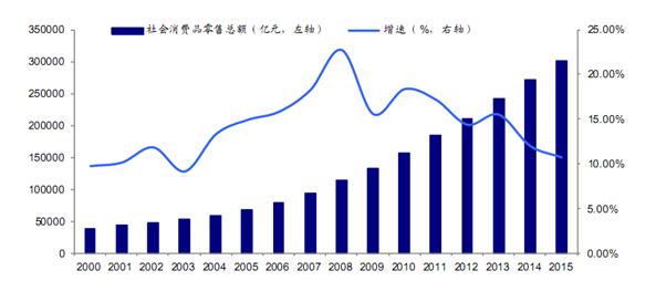 在中国国内消费的黄金时期,社会消费品零售总额从 2000 年的 3.9 万亿元增长到2015 年的 30.1 万亿元,增长 6.7 倍,而啤酒行业销售额同期增长 3.3 倍,啤酒吨酒价格增长不到 1倍。