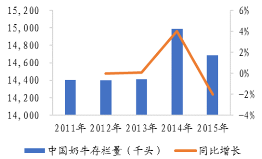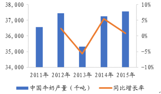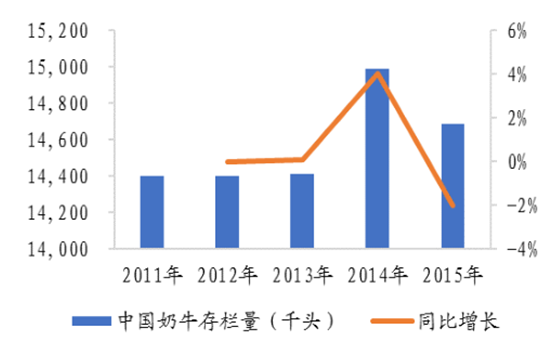 牛奶产量 13年降幅颇大,14 和15年快速回升