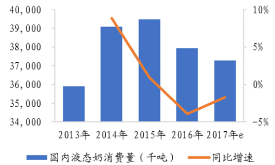 中国乳制品消费量(还原原奶量)15 年增速放缓