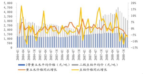 中国饲料玉米和豆粕的价格在 2007 年上涨迅速