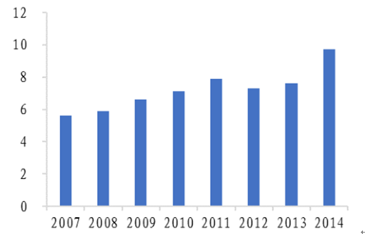 本阶段上涨的因素是需求端保持增长,原奶供应受到夏季罕见高温和疫病的影响,产量下滑严重,供不应求拉动原奶价格上升。受到夏季高温以及疫病的影响,2012 年和 2013 年奶牛存栏量增长几乎停滞,原奶产量在 2013 年大幅下降接近 6%。在乳制品消费继续保持增长的环境下,原奶价格开始上涨。