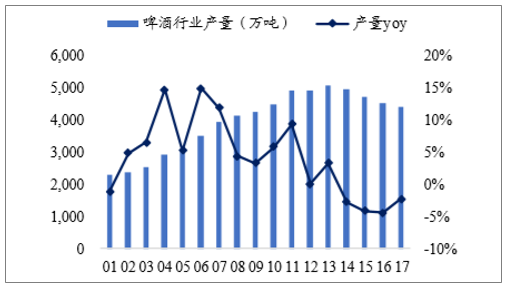 2014-2017年行业产量处于饱和,行业景气度下降,2017年显现底部。2014年起,受经济增速放缓、白酒及葡萄酒等餐饮用酒有所替代等影响,啤酒行业产量在高速发展多年后迎来负增长、行业收入步入5%以下低增长区间,而在随后几年,行业产量始终未能突破5000万吨、收入徘徊在1800亿元水平。2017年中国人均啤酒消费量约34升、略高于全球平均水平(约33升),而从目标消费人群看,啤酒主力消费人群(20-40岁)人口数量占比由2003年的34%降至2017年的30%,且随着老龄化的推进,预计比例仍将继续压缩,因此行业容量已基本处于饱和状态。