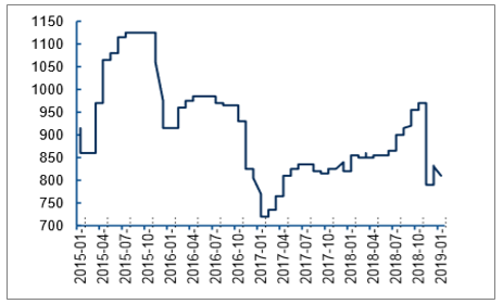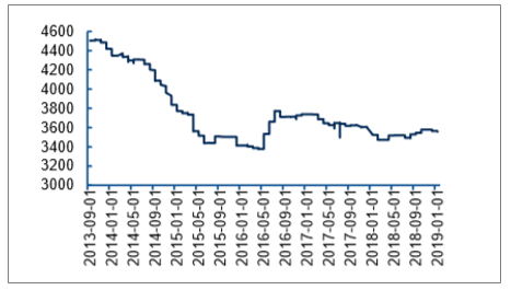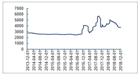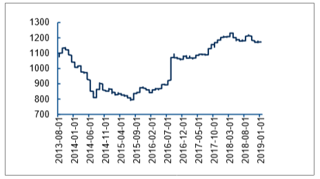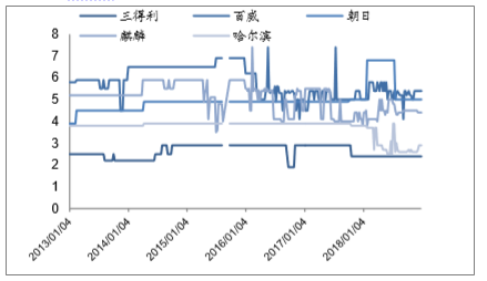 白砂糖2018年12月28日价格5070元/吨同比下降19.14%;南宁糖蜜2019年1月4日价格810元/吨同比下降1.22%;生猪2019年1月4日价格13.01元/千克同比下降12.98%;乳清粉2019年1月3日价格7633元/吨同比上升24.68%;进口大麦2018年11月平均价格264.5美元/吨同比上升12.87%;大豆2019年1月3日价格3558元/吨同比上升0.96%;包材来看,中国玻璃指数2019年1月3日为1171.9同比下降2.72%;瓦楞纸2018年12月31日价格3762元/吨同比下降10.31%。