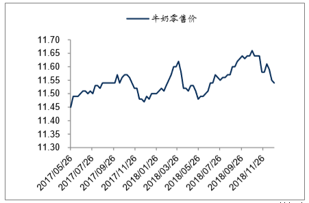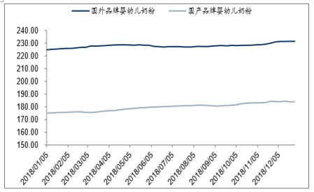乳制品:2018年12月28日牛奶零售价11.54元/公斤,同比上升0.44%。酸奶价格14.41元/公斤,同比上升0.14%。奶粉:2018年12月28日国产婴幼儿奶粉价格同比上升5.30%,国外婴幼儿奶粉价格同比上升3.15%。