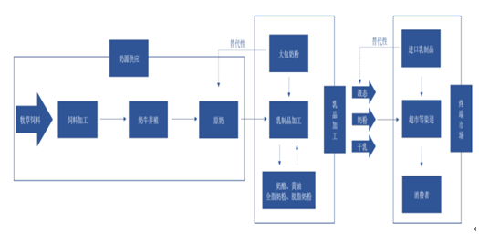 总体来看,乳制品产业链包含上游的养殖奶牛和生产原奶的农场,中游的乳制品加工企业,以及下游的终端消费者。