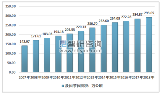 根据国家统计局数据:2017年我国茶园面积为284.87万公顷(折合4273.1万亩),2018 年全国茶园面积293.05万公顷(折合4395.8万亩)。其中,面积超500 万亩的省份有贵州、云南、四川及福建四省。其中贵州省茶园面积为684.3万亩,四川省茶园面积为545.1万亩,云南省茶园面积为666.8万亩。