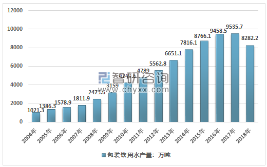 2004-2018年中国包装饮用水行业产量情况