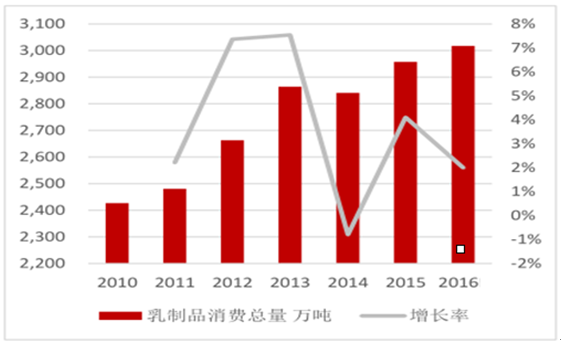 我国的乳制品消费受宏观环境和行业发展影响,处于较为低迷的状态,预计2016年国内乳制品消费总量增速将不超过2%,且这样的低增速在中期不会改变。