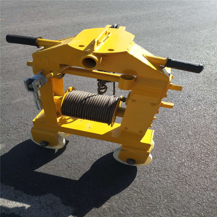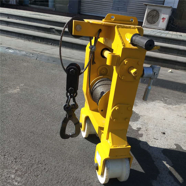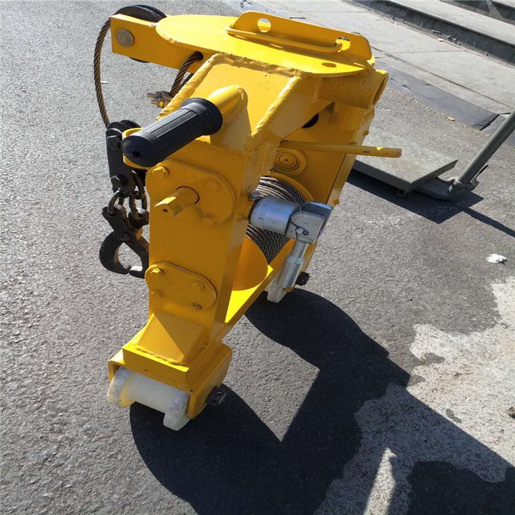采用二级齿轮减速传动,并设有棘轮,可将较重的标的物直接从路肩托拢吊起运走,具有快速起重吊运效果。材料选用碳素钢。多功能拉轨机载重量大,简单、美观、实用。