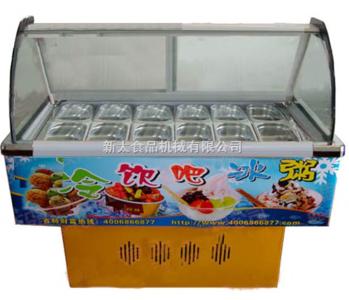 14盒豪华型冰粥机和其他三种冰粥机不同之处在14盒豪华型冰粥机上下两层都有玻璃推拉门,操作起来更方便一些,并且冷冻室的面积比其他三种冰粥机的面积都要大,夏天还可以多冻一些饮料拿出来卖。14盒豪华型冰粥机的尺寸(长122cm.宽66cm,高134cm)。 4使用注意编辑 1.额定电压:220V,额定频率:50HZ,使用电压范围:187-242V,如果电压高于242V或低于187V,请您加装容量500-1000W以上的电源稳压器后再使用,以免损坏压缩机电机和风扇电机,凡使用电压不符合上述要求所引起的电器元件损坏,均不属保修范围,请您充分注意到这一点。2.导线额定容易为6A、10A,导线截面积为7.5mm2,导线可以是单股,也可以是多股,需设置额定电流15A的保险丝。3.必须使用单相三级电源插座。并有良好的接地线。注意:地线接线**不允许连接到自来水管或煤气管上。4.当需要清楚柜体和冷凝器上的灰尘时,切不可用水冲洗,以免引起电器元件的损坏。5.易燃、易挥发、易爆,腐蚀性及有毒物品不能放在箱内。 5冰粥做法编辑 ●梨粥原料:梨10个,粳米100克,冰糖适量。做法:1、将刺梨捣碎烂,然后去渣(或煮汁去渣)留汁。2、把洗净的米和冰糖放进刺梨汁中同煮成粥即可。作用:具有清热解毒、消食和胃的功效。●香蕉粥原料:香蕉3条,糯米100克,冰糖适量。做法:1、香蕉去皮、切成丁块。2、将米放入开水锅里烧开,加入去了皮的香蕉丁和冰糖,熬成粥即可。作用:可清热润肠,和胃健脾。 6产品特点编辑 1、大弧型玻璃、产品一目了然。2、采用钢化镀膜热反射玻璃移动门防凝霜。3、内置特种辅助灯光,令食品色泽鲜艳、展示效果强。4、制冷强劲、温度均匀、保险效果好。5、超大面积蒸发,四面制冷,制冷速度快。6、钢化玻璃,通透清新美观大方**承托塑造实用典范。7、大方独特的不锈钢托盘、食品架,合理的空间设计,使安装、使用、清洗方便。8、底部设有万向角轮移动方便。