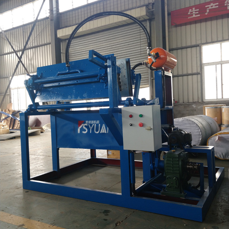 蛋托机适用于小容量蛋托生产线,功耗小,适合家庭小规模或作坊式生产。原料来源于以芦苇浆、稻草浆、渣浆、毛竹浆、木浆等为主的各种浆板和以废纸板、废纸箱纸、废白边纸、造纸厂尾浆废料等为主的废纸,来源广泛,易于收集。所需操作人员为5人/班:制浆区1人,成型区1人,推车晒产品2人,打包1人。