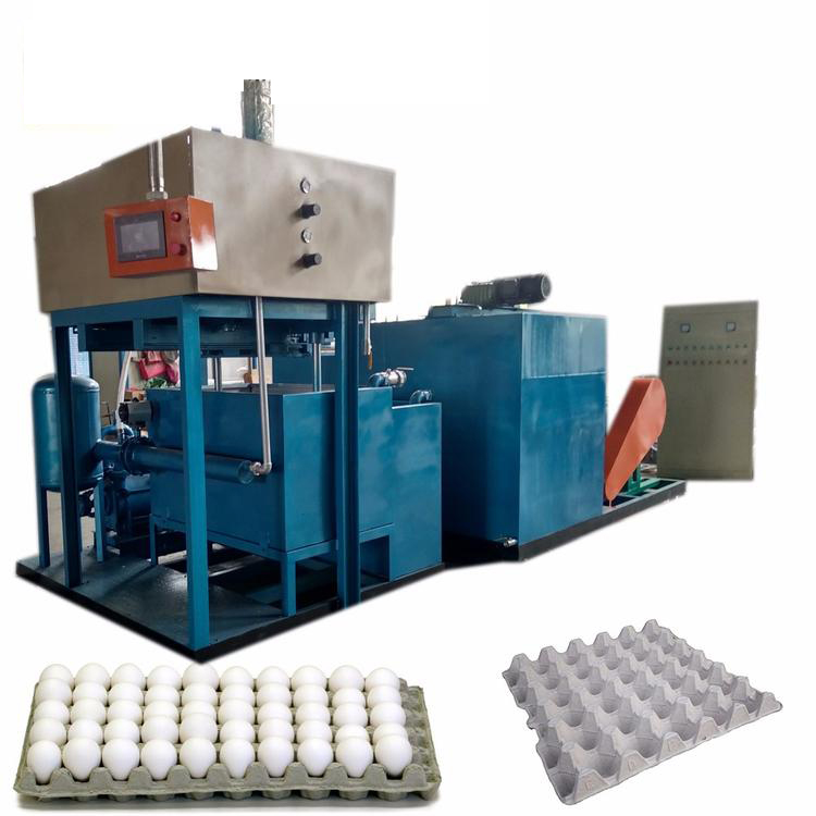 废纸加入碎浆机加水输送到储浆池,用搅拌机把储浆池的纸浆搅拌均匀输送到供浆池,搅拌供浆池的纸浆到一定浓度输送至成型机,成型机生产出蛋托到传送带,传送带经过烘干洞,把蛋托烘干,收托并打包**可以了。另外通过真空泵可以把成型机里面不用的水抽到回水池,回水池可以输水到碎浆机和储浆池,达到水可以循环使用