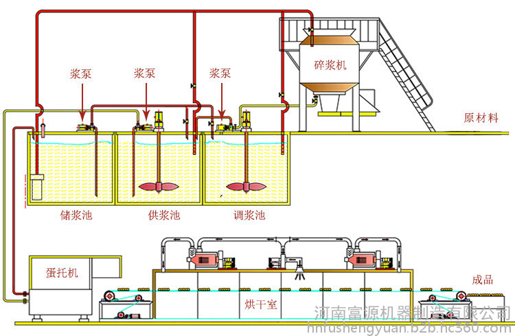 纸浆系统的主要设备有:水力碎浆机、振筛、浓度控制仪、搅拌器、自动添加助浆系统、浆泵、水泵、控制柜、浆桶、水桶等。根据对成品质量的不同要求,可适当选择增加浓浆,精浆设备,如压力筛,磨浆机等。