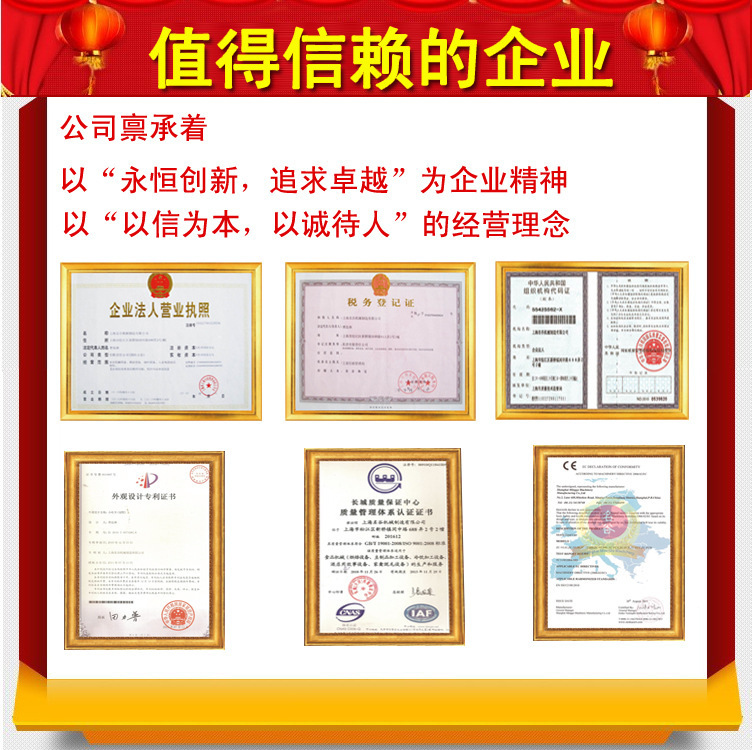 关于信誉 本公司做电商8年,一直是阿里诚信通会员(实地认证),产品很多出口到国外(有CE认证及ISO9001质量体系认证)。如果您不相信网购,请谨慎选择,不要担心“打款后不发货,怎么办?”等类似问题。您可以到我们公司实地考察,本公司是自产自销,拥有自己的工厂也有进出口权,产品销往全球,深受国内外客户的信赖与认可!同时您可以登陆上海工商网查询,只要输入我们公司名字便可查到,选择放心企业,做放心生意!!! |