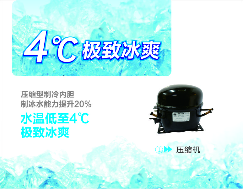 1、全压缩制冷机,螺旋D形管蒸发器,传热效率高,制冷量大;