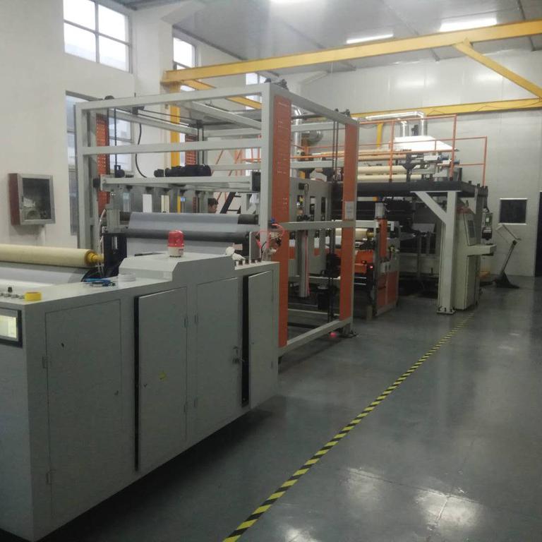 TPU胶膜是在TPU颗粒料的基础上,通过流延工艺制成薄膜。金韦尔公司借鉴众多聚氨酯TPU生产厂家的生产经验,通过优化和创新,采用一台或多台单螺杆挤出机共挤,每台挤出机分为8个温控区准确控温,产量可达600KG/H,做单层、A/B/A或A/B分配模式,能满足上下两层同时覆离型膜、附布。TPU胶膜具有环保无毒、防霉抗菌、耐磨抗腐、生物相容等优良特性。广泛应用于医疗隔离服、防护帽等医用隔离产品的卫生防疫材料及鞋材、成衣、充气玩具、运动器材、医疗器材、健身器材等。