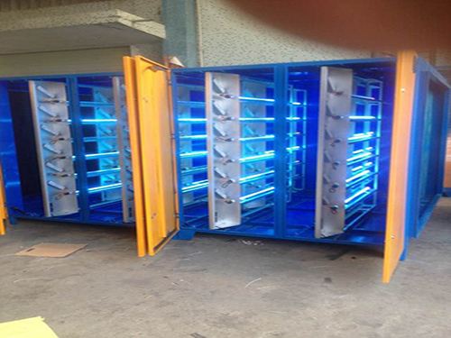 烤漆房是一种给设备表面进行喷漆染色并烘干的设备,它不但能对设备起到美观的作用,而且还能保护物品;既可以防止物体在潮湿和灰尘的恶劣环境中遭到腐蚀,喷漆可以防止金属件被侵蚀,延缓塑料件的老化;同时可以通过喷漆上色对物体达到艺术化审美的设计风格,让物体外型更美观,带来更多的商业价值和视觉美感。烤漆房**是这种专业的设施通过技术处理对物体表面进行装饰、修复的重要设备。喷漆时,外部空气经过初级过滤网过滤后由风机送到房顶,再经过顶部过滤网二次过滤净化后进入房内。房内空气采用全降式,以0.2-0.3m/s的速度向下流动,使喷漆后的漆雾微粒不能在空气中停留,而直接通过底部出风口被排出房外。这样不断地循环转换,使喷漆时房内空气清洁度达98%以上,且送入的空气具有一定的压力,可在车的四周形成一恒定的气流以去除过量的油漆,从而很好限度地保证喷漆的质量。