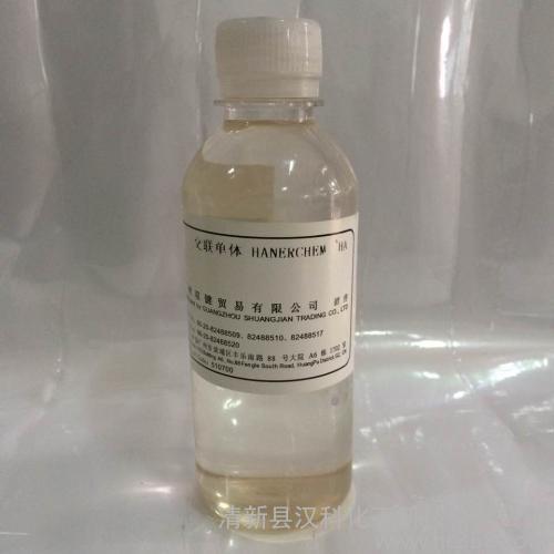 HANERCHEM HA 是汉科化工生产的产品商标,是专为使用 N-羟甲基丙烯酰胺(NMA)的客户特殊设计的新型交联单体。该产品系甲基丙烯酸酯的衍生物,并含有丙烯酰胺基团。大量试验表明,HANERCHEM? HA 与目前市售的液体 N-羟甲基丙烯酰胺(48%)可 1:1 互换使用,具有相同的交联度;并且,树脂的干燥速度、耐水、耐擦洗与硬度都有不同程度的提高;同,合成的树脂绝不含有甲醛,完全符合环保及卫生要求。