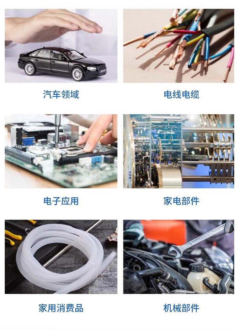 1、广泛用于发泡鞋材、功能性棚膜、包装模、热熔胶、电线电缆及玩具等领域。 2、乙酸乙烯含量在5%~10% 的EVA产品为弹性薄膜等; 3、乙酸乙烯含量在20~28%的EVA,用于热熔粘合剂和涂层制品; 4、乙酸乙烯含量在5%~45%,产品为薄膜(包括农用薄膜)和片材,注塑、模塑制品,发泡制品,热熔粘合剂等。 (1)发泡鞋材。在鞋材使用的EVA树脂中,醋酸乙烯含量一般在15%~22%。由于EVA树脂共混发泡制品具有柔软、弹性好、耐化学腐蚀等性能,因此被广泛应用于旅游鞋、登山鞋、拖鞋、凉鞋的鞋底和内饰材料中。另外,这种材料还用于隔音板、体操垫和密封材领域。 (2)薄膜。EVA薄膜的用途是生产功能性棚膜。功能性棚膜具有较高的耐候、防雾滴和保温性能,由于聚乙烯不具有极性,即使添加一定量的防雾滴剂,其防雾滴性能也只能维持2个月左右;而添加一定量EVA树脂制成的棚膜,不仅具有较高的透光率,而且防雾滴性能也有较大提高,一般可超过4个月。另外,EVA还可用于生产包装膜、医用膜、层压膜、铸造膜等。 (3)电线电缆。随着计算机及网络工程的不断发展,出于对机房安全的考虑,人们越来越多地使用无卤阻燃电缆和硅烷交联电缆。由于EVA树脂具有良好的填料包容性和可交联性,因此在无卤阻燃电缆、半导体屏蔽电缆和二步法硅烷交联电缆中使用较多。另外,EVA树脂还被应用于制作一些特殊电缆的护套。在电线电缆中使用的EVA 树脂,醋酸乙烯含量一般在12%~24%。 (4)玩具。EVA树脂在玩具中也有较多应用,如童车轮、座垫等。(5)热熔胶。以EVA树脂为成分的热熔胶,由于不含溶剂,不污染环境且安全性较高,非常适合于自动化的流水线生产,因此被广泛应用于**无线装订、家具封边、汽车和家用电器的装配、制鞋、地毯涂层和金属的防腐涂层上。