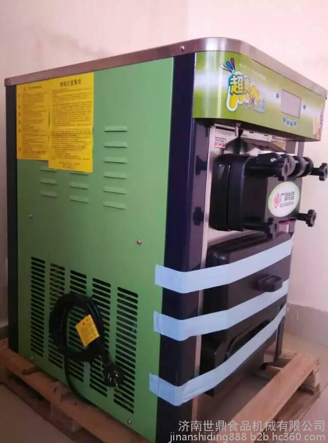 三头冰淇淋机 三色冰淇淋机有两个储料缸两个制冷缸和三个出料口,同时可以出三种颜色即三种口味的冰淇淋,其中包括两种纯口味和一种混合口味.这种冰淇淋机市场上比较常见,重量一般在150KG,功率在1700W-4000W之间不等.适合各类冰淇淋店,西餐厅,酒吧,咖啡店,电影院等对冰淇淋产量和口味要求比较多的场合使用。