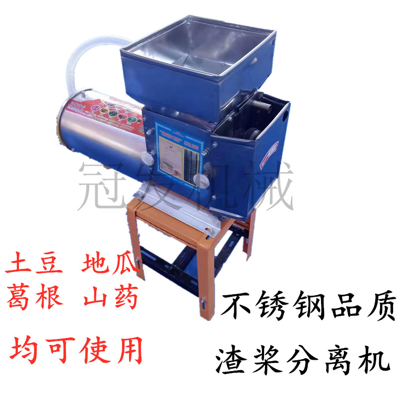 微型薯类浆渣分离机是本厂新研制开发的,该机器采用全封闭机构,结构紧凑,性能优良。一次性自动进料,破碎、分离、排渣,省时省工。适用于边远农村使用,单相电机2.2KW即可生产,使用非常方便,每小时加工500公斤。