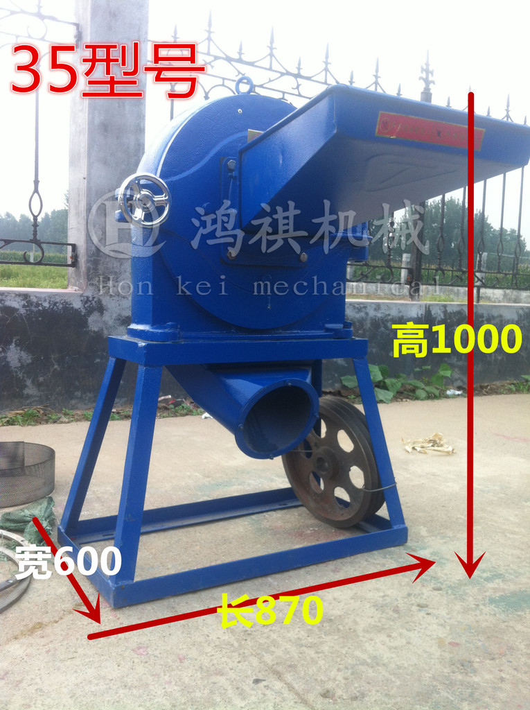 9FZ—系列粉碎机,主要工作零件为安装的转子上的扁齿,园齿可以粉碎各种颗粒原料,是目前广泛采用的经济粉设备,具有体积小、重量轻,安装、操作、维修简便,生产效率高等诸多优点。 齿爪式粉碎机主要有上机体、机盖、转子总成、筛网、喂料装置、机架等六部分组成,机体和转子总成共同形成粉碎室,转子总成室主要工作部件,物料的粉碎**在粉碎室完成。当物料进入粉碎室后,在园齿和扁齿的部断打击及揉撞作用下,迅速破碎成细粉和浆状,在离心力和气流作用下,通过筛孔经出料口排出。 本机加工范围广,它既能粉碎玉米、小麦、豆类、杂粮、秸秆、藤蔓、干鲜薯类;叶壳等粮食及饲料,又能粉碎石膏、滑粉、稀土、化工、陶土、等低硬度矿物质等,还可以粉碎多种中药材。本机可用电机和柴油机等配套使用。