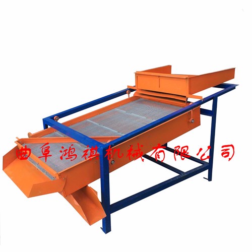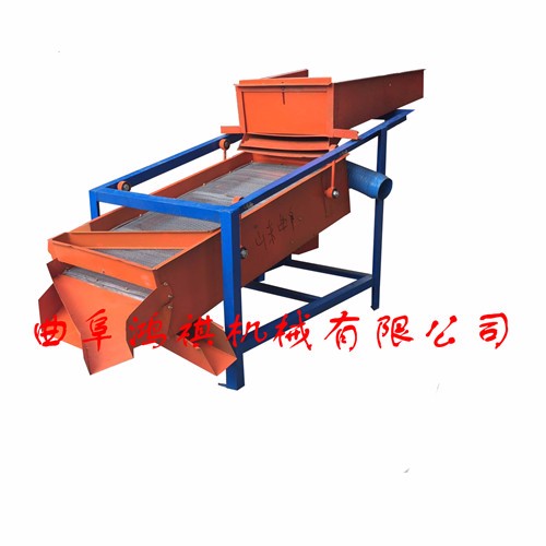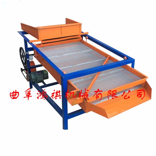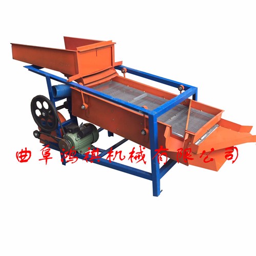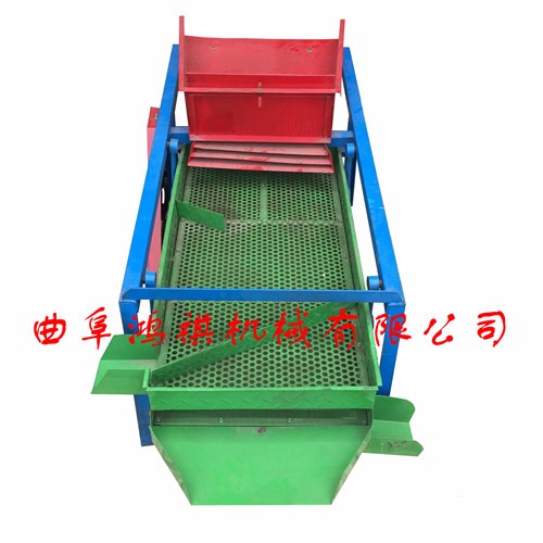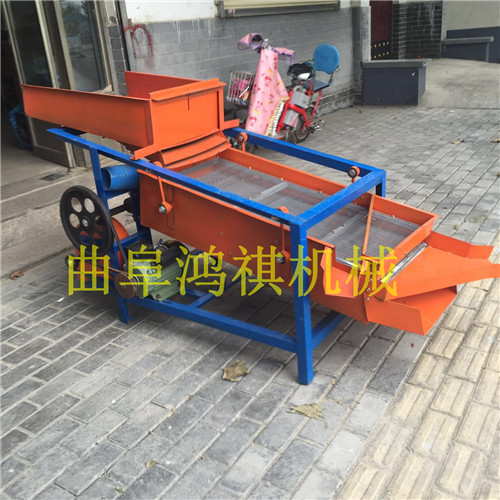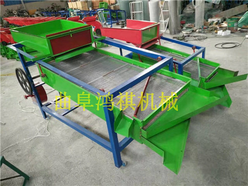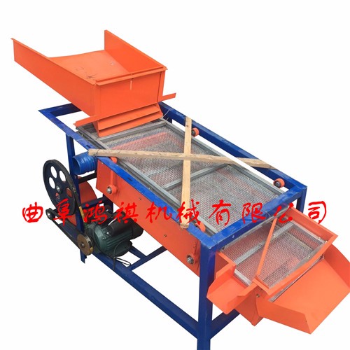 该精选筛为二层筛网,先经过进料口处风机抽风,直接抽走重量轻的杂叶或麦秸秆,上层的初次筛分在把大杂清理过,好的粮食(种子)直接落到下层晒网上,下层筛网会把粮食(种子)中的小杂。小石子,有缺陷的粮食(种子)直接漏掉,完好的粮食(种子)会从出料口筛分开出来。该小型清粮机解决了扬场机的功能单一,不能有效去除石子,土块的缺陷,更能为清理,当净选粮食(种子)带来满意的效果。该机有占地小,移动方便,便以维修,除尘除杂效率明显,能耗低,使用简便等优点。真可谓是中小型粮食清理净选筛中的战斗机!