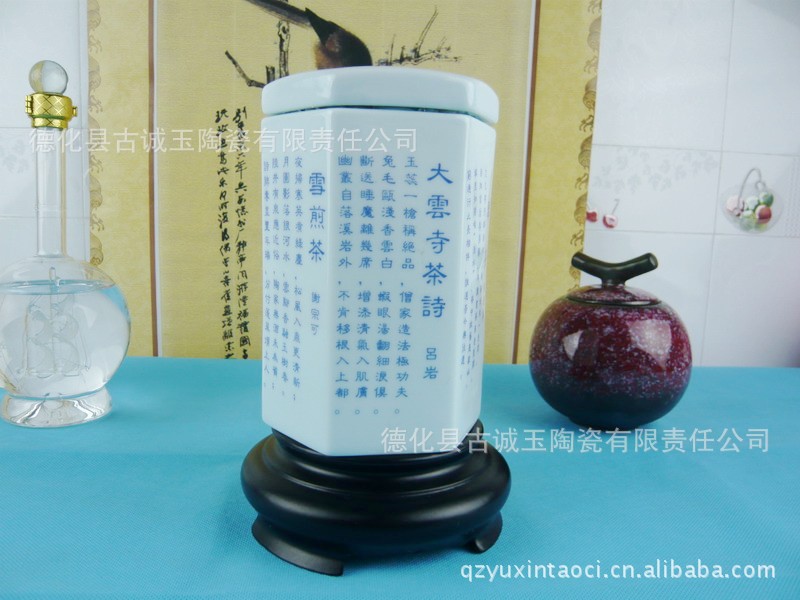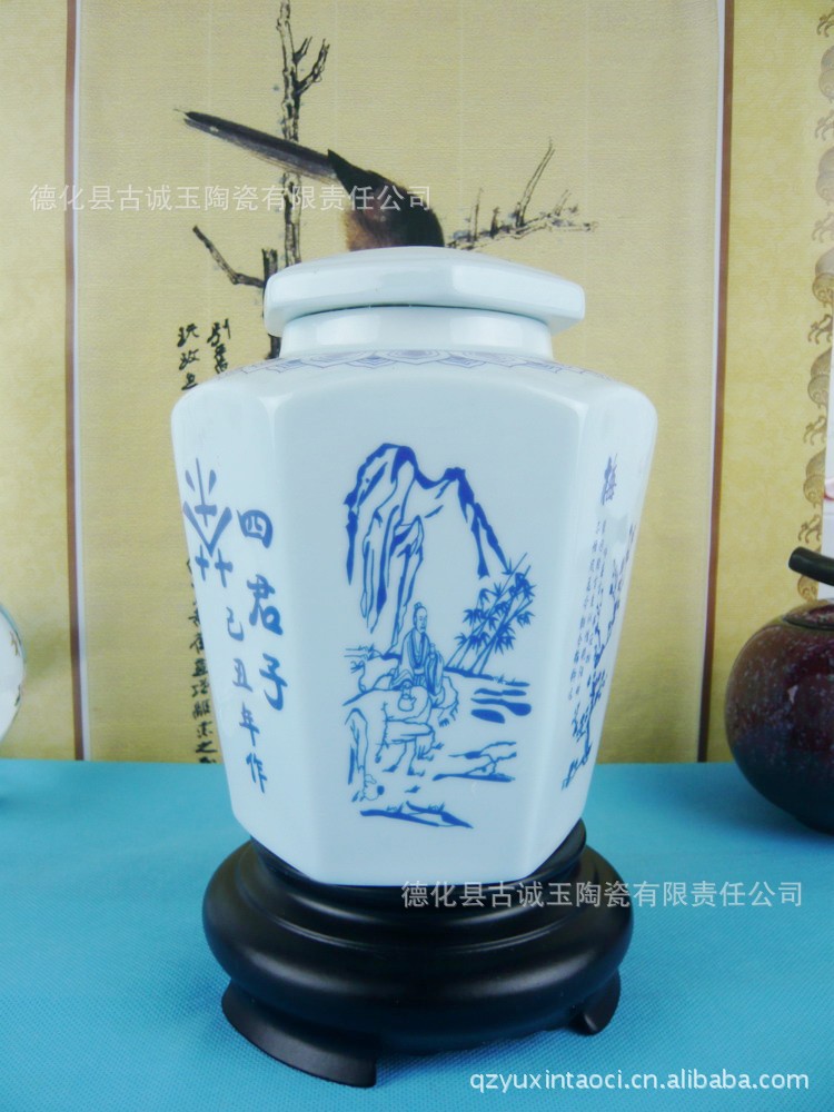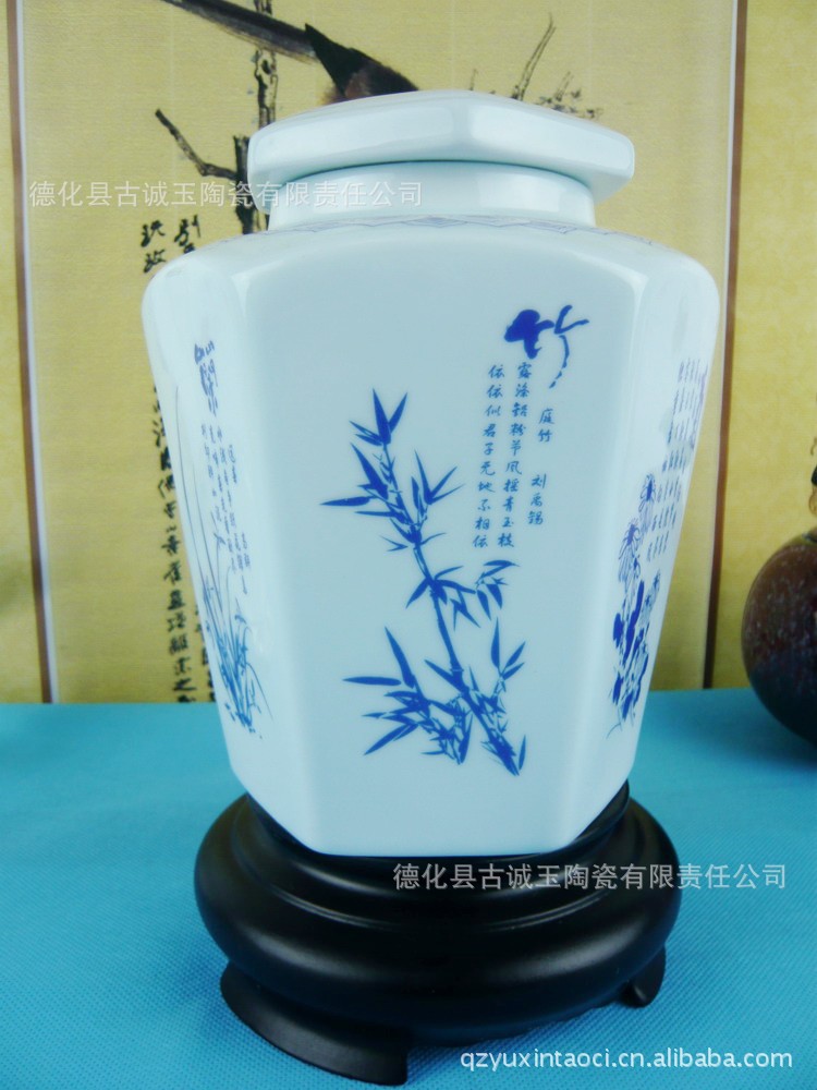 【商品描述】1.陶瓷茶叶罐是存放茶叶的容器,也可用来储存干货,由于现代茶艺普及越来越多人认识,陶瓷茶叶罐的基本形态和花面就有了多样化。有青花、粉彩、素彩、贴金等等,陶瓷茶叶罐不但可以作为存放茶叶容器,也可以作为家居装饰,作为家居小件点缀可以起到画龙点精之用。现代陶瓷茶叶罐的用处非常之多实用、美观、不变形、不变色作工精美极具收藏价值。