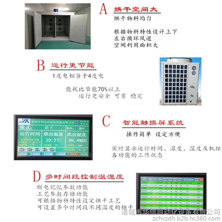 2)、高效节能:只需消耗少量的电能**可以在空气中吸收大量的热量,耗电量仅为加热器的1/3?1/4;同燃煤、油、气烘干设备相比,可节省75%左右的运行费用。1度电等于4度电。