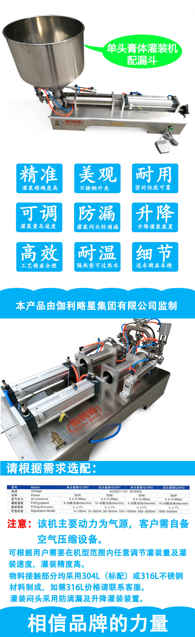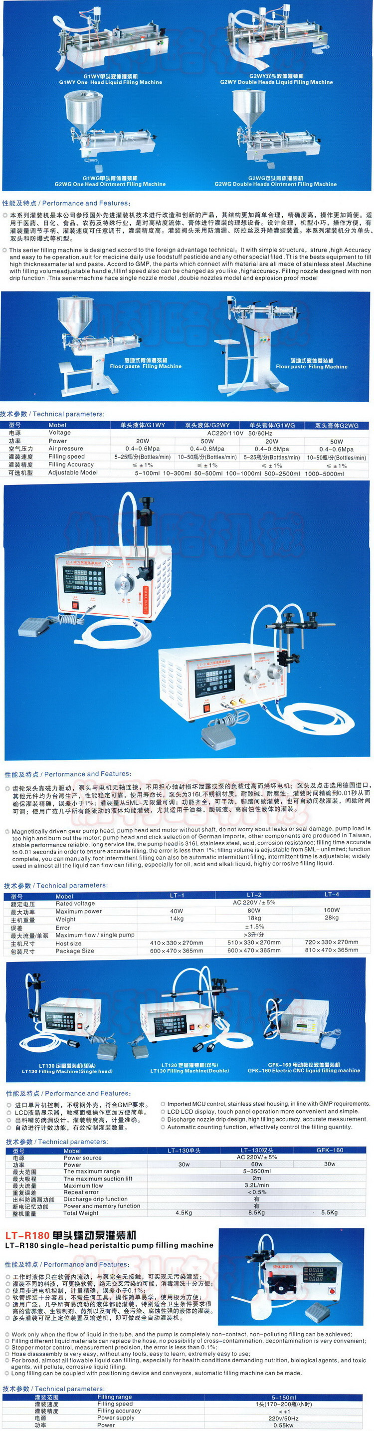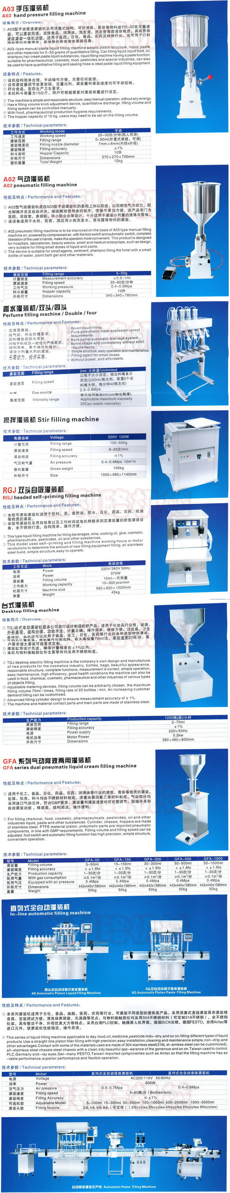 本系列灌装机是参照国外先进灌装机技术进行改造和创新的产品,其结构简单合理,度高,操作简便,人性化设计更加符合现代企业的要求。广泛适用于医药、日化、食品、农药及特殊行业,是对高粘度流体、膏体进行定量灌装的理想设备。
