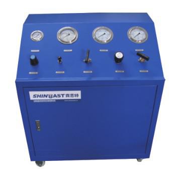 该气体增压系统特别适用阀门管路,高压容器及连接件等受压设备的试压试验,气瓶充装试验,气密性试验,密闭性试验,爆破耐压测试等,同时也可用于学校,科研及检验部门的检测工具用。该机器还可使用在三坐标测量机、激光打标机、数控加工中心、氩弧焊接机、二氧化碳保护焊焊接机、啤酒厂包装设备、啤酒厂气控阀门、啤酒厂麦芽充氧设备、气密性试验机等各种高精度气动设备需要增压的场合。赛思特高压气体增压设备功能特点: