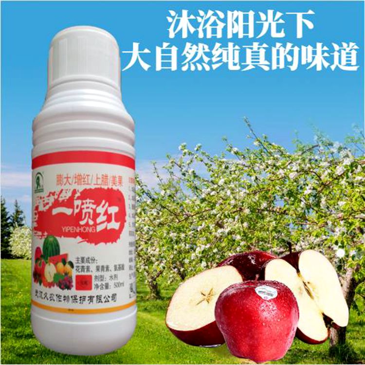 功效:天然调节,催红不催熟,增加含糖量,减少日灼果,加速果实表皮色素细胞的分裂,促进果品着色均匀,果色鲜亮,甜度增加,提高产量。