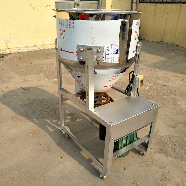 长期以来,中小养殖场饲料的搅拌是一个大的问题,大多数都是采用铲子进行简单的搅拌,这种简单的搅拌对使用量较少的饲料中需要添加的各种预混料、药物等很难均匀搅拌,经常造成药物不能全面发挥效果,甚至导致局部过多的药物或添加剂引起动物中毒;加上饲料搅拌非常辛苦,特别是需要发酵的饲料和饲喂湿料,由于重量过大,搅拌吃力,劳动强度大,虽然发酵饲料、农家饲料、自配饲料成本要低于购买的商品全价饲料,由于劳动强度过大的因素而放弃。