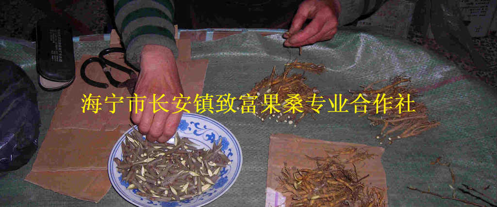 海宁市长安镇致富果桑专业合作社:原称海宁市长安镇兴成桑苗专业合作社(东方红果桑苗嫁接场),位于浙江省海宁市长安镇东升村,是全国重点果桑嫁接基地。每年都嫁接各类果桑苗50余万株,果桑苗远销海外,销往韩国已达5年之久,去年还开拓了日本市场。国内主要销往福建、四川、河南、安徽、山东、陕西、北京、辽宁、上海等地,受到了客户一致好评。特别是无籽大十果桑苗,在本省的宁波、上虞、金华等地受到广大果农的欢迎,获得了较好的经济效益,现那边已种植了万亩基地,安吉也已开发了千亩种植基地并取得了良好的经济效益。因自繁自育,所以价格更优。现:我基地正式更名成立为海宁市长安镇致富果桑专业合作社。注册号:330481NA000122X 许可证号:(0405)第(1027)号 。