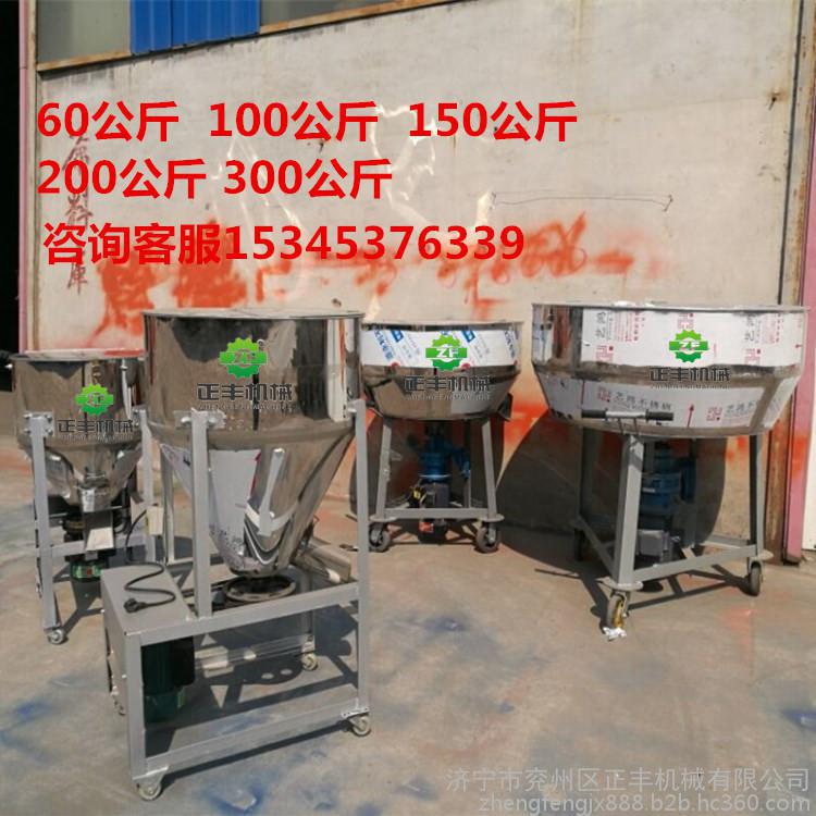 移动式小型饲料搅拌机采用电机采用单相减速电机,用电方便,只要有照明电源的栏舍即可插电使用。拌料桶采用高强度无锈钢板精工焊制而成,不用再当心搅拌发酵类饲料引起生锈污染饲料。桶体完全改变传统的圆桶形状,特别设计成漏斗形状,结合特殊结构设计的搅刀,使加工原料在桶内翻滚速度快,搅拌实现了完全无死角,彻底解决了传统搅拌机桶底存在死角搅拌不均匀的问题,混合均匀度高,在拌料添加预防药物和饲料添加剂时不用再担心搅拌不匀药。虽然搅拌机结构小巧,但安装的减速电机搅拌力度**强劲,搅拌高效有力,加入草茎杆粉混合搅拌也轻松自如。每桶搅拌干料100公斤,湿料150公斤,从投料、加水到搅拌均匀只需5分钟,每小时搅拌可出料1000公斤以上。