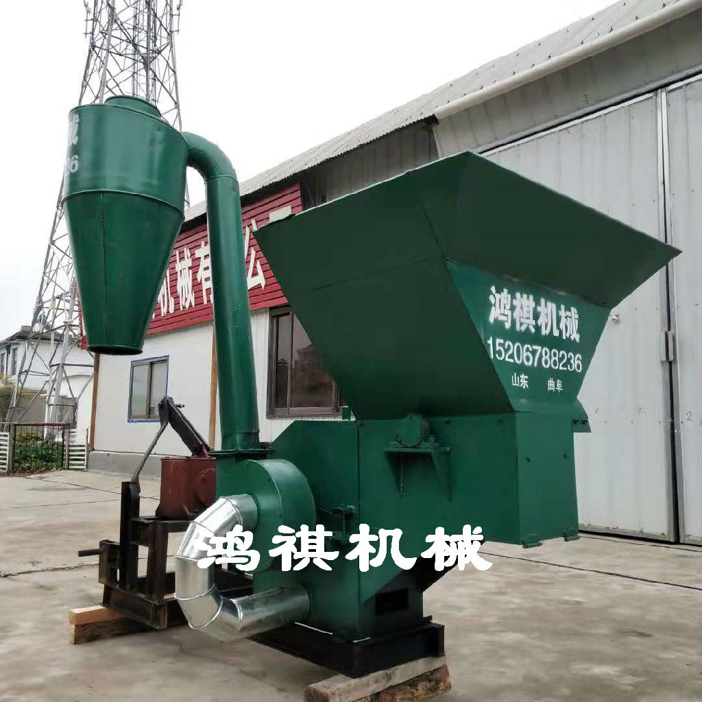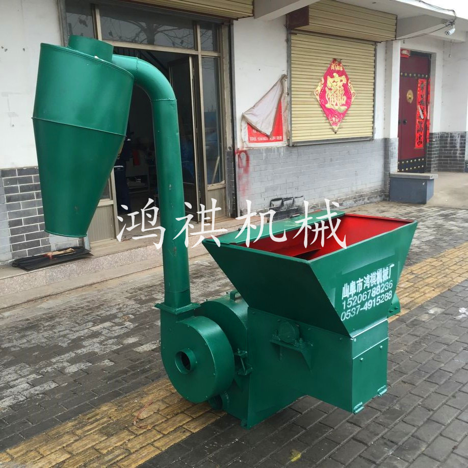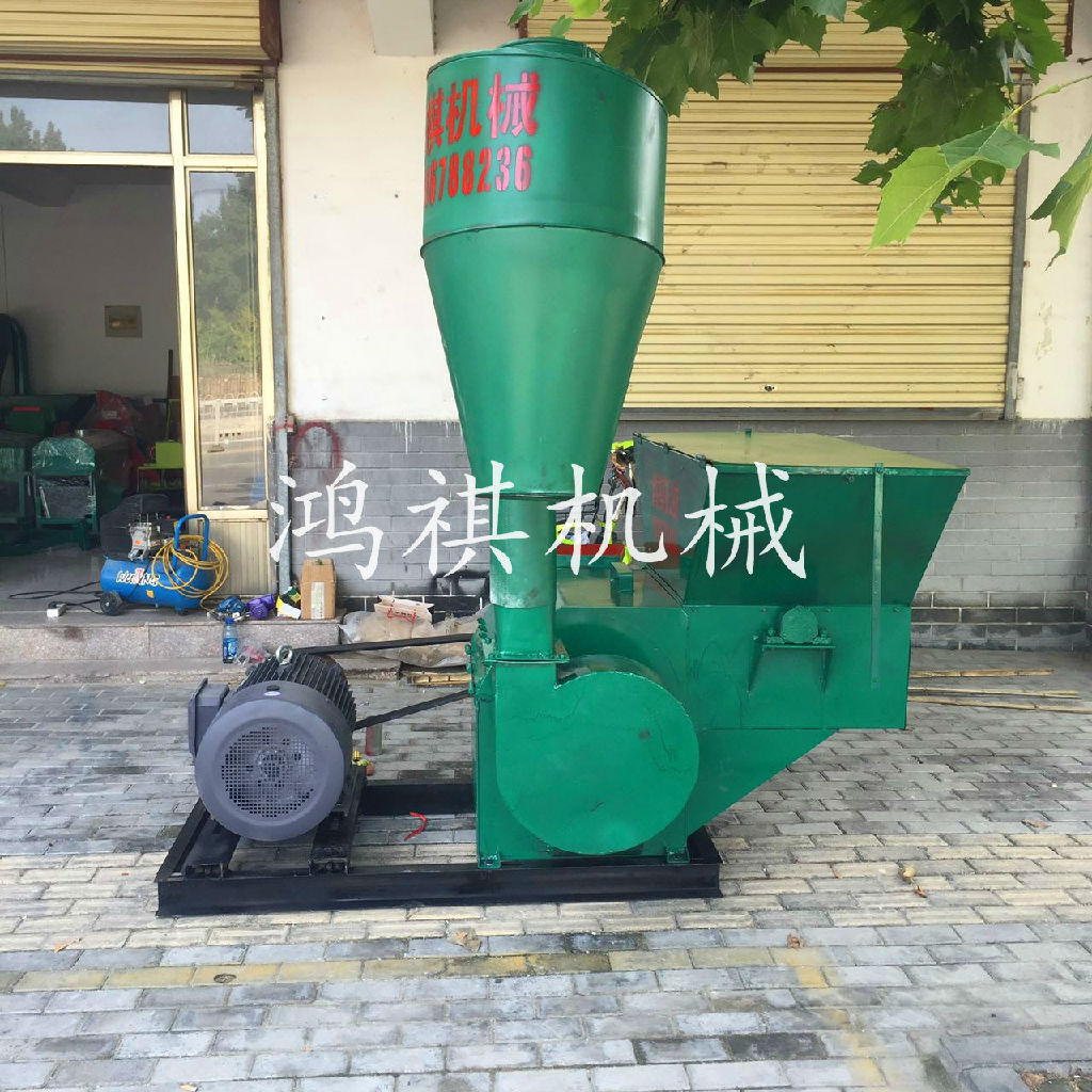 该机一端配以用变速箱与拖拉机后输出轴利用万向节连接紧固高速旋转。秸秆粉碎机使涡轮与筛网圈上的磨块组成合理、紧凑的结构,使物料在旋转气流中紧密地磨擦和强烈的冲击研磨,并在叶片与磨块之间的隙缝中,进行再次研磨,通过筛网的调节使物料粉碎至1-40mm之间。通俗地讲,养殖用粉碎机是物料通过与本机相配的喂料机构由顶部喂入,在高速旋锤片打击和筛板磨擦作用下,物料逐渐被粉碎,并在离心力的作用下,穿过1-40mm的筛孔由风机提入沙克龙中从沙克龙底座出料口排出。玉米秸秆粉碎机结构紧凑合理、体积小、耗能低,效率高,转动平稳,噪声低,密封可靠,无粉尘污染,自冷功能良好,安装简单,易拆易修,调换损件方便!本机器大型粉碎机主要适用于中低硬度物料的粉碎,能粉碎粒状的如玉米、高梁、麦类、豆类、饼类的精饲料;也可将块状的如牧草、干杂草、地瓜秧、花生秧、玉米秸、干谷秸等粉碎成粗饲料;应用于农村中小型养猪场、养猪专业户和副业加工户是一种理想、有效、经济的设备。