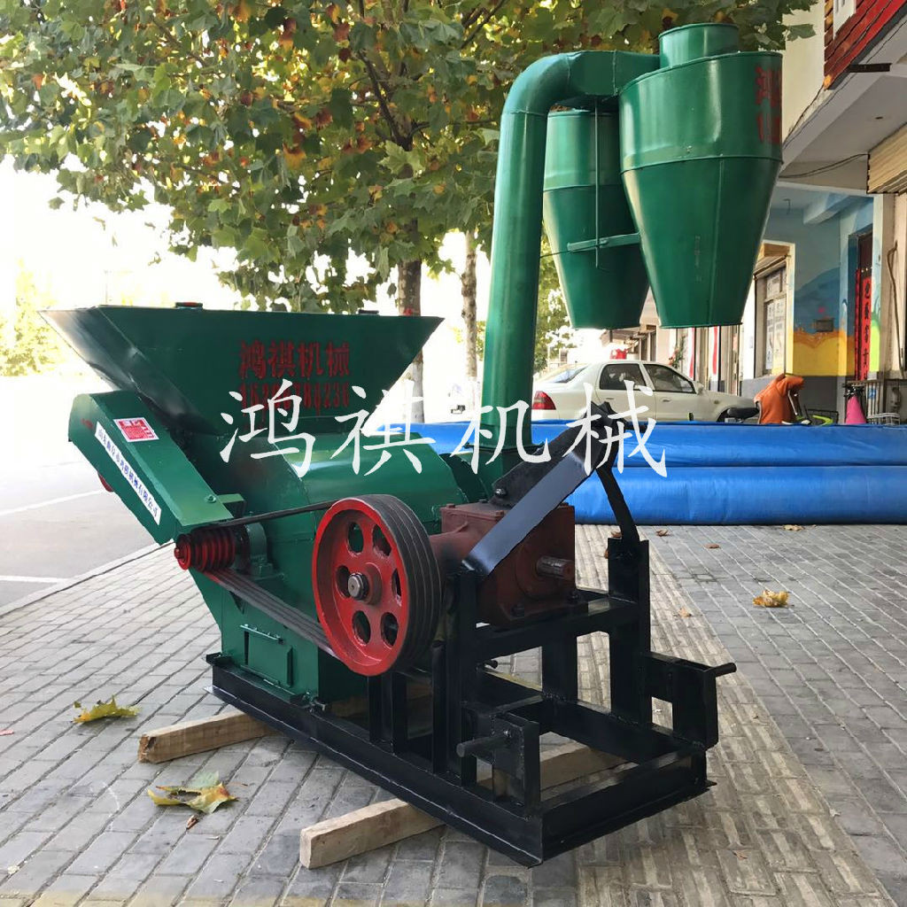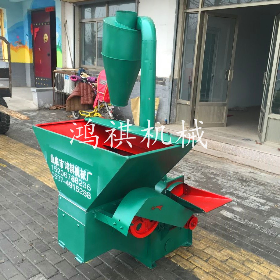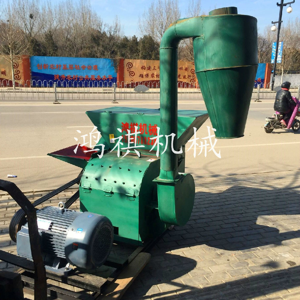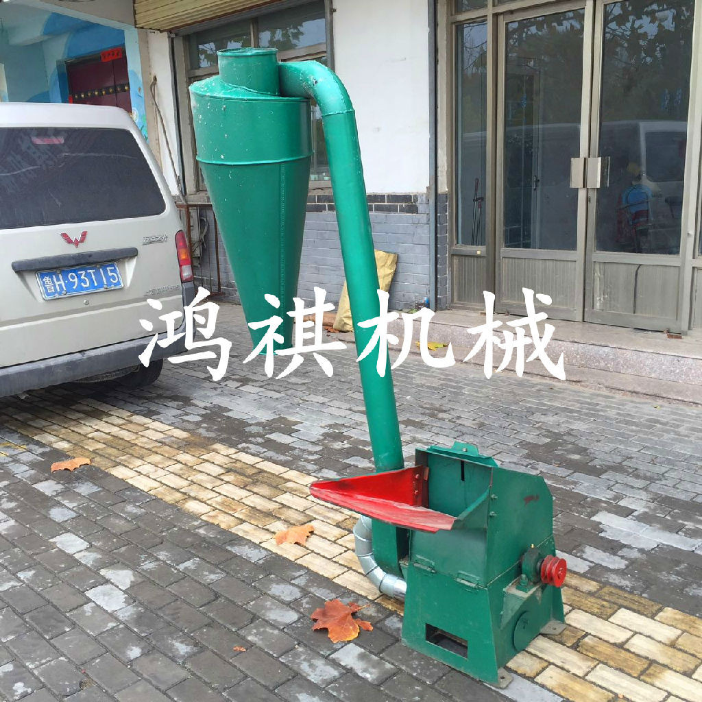 该机一端配以用变速箱与拖拉机后输出轴利用万向节连接紧固高速旋转。秸秆粉碎机使涡轮与筛网圈上的磨块组成合理、紧凑的结构,使物料在旋转气流中紧密地磨擦和强烈的冲击研磨,并在叶片与磨块之间的隙缝中,进行再次研磨,通过筛网的调节使物料粉碎至1-40mm之间。通俗地讲,养殖用粉碎机是物料通过与本机相配的喂料机构由顶部喂入,在高速旋锤片打击和筛板磨擦作用下,物料逐渐被粉碎,并在离心力的作用下,穿过1-40mm的筛孔由风机提入沙克龙中从沙克龙底座出料口排出。玉米秸秆粉碎机结构紧凑合理、体积小、耗能低,效率高,转动平稳,噪声低,密封可靠,无粉尘污染,自冷功能良好,安装简单,易拆易修,调换损件方便!本机器大型粉碎机主要适用于中低硬度物料的粉碎,能粉碎粒状的如玉米、高梁、麦类、豆类、饼类的精饲料;也可将块状的如牧草、干杂草、地瓜秧、花生秧、玉米秸、干谷秸等粉碎成粗饲料;应用于农村中小型养猪场、养猪专业户和副业加工户是一种理想、有效、经济的设备。