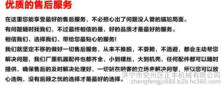 **,免除了中间商,生产者直 接与用户见面,简化了流通过程,缩短了流通时间实现了真正的厂家优惠价格。两年内非人为因素,因产品质量机器零配件需要更换的,公司除免费更换外,并承担配件包装、运输费用。(安全信誉保障:只需预付少量定金,即可物流快运发货,货到再付清余款)
