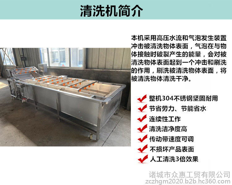 众惠3米气泡清洗机 叶类蔬菜清洗设备 毛豆清洗去杂机器