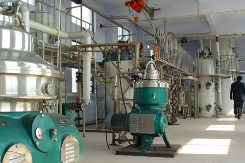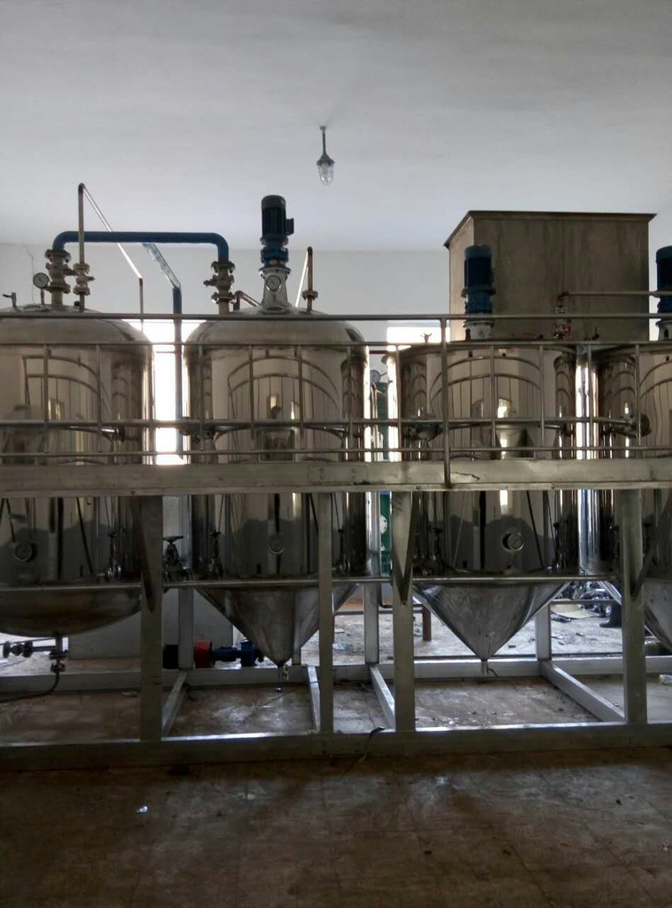河南省中科集团科隆机械有限公司是属与国贸部机械设计研究院。本院是粮油加工机械工艺设计和研发科技产品的专业机构。以设计院为依托现开发的环保型FAQB系列一级食用油加工精炼设备.也可根据用户需求本机也可精炼色拉油丶高烹油丶调合油等等。植物毛油压榨油或浸出油的生产的油总称毛油,毛油含有对消费者有害的物质。这些物质有些是自然存在的,有些是在生产或储存过程中产生的,对人们消费而言.因而能被沉析或离心分离。除去游离酸后,中和还不能完成,因为本阶段还须去除非水化磷脂。另外它还要降低金属离子以及色素等次要组份的数量 脱色工艺用合适的吸附材料除去色素如胡萝卜素、叶绿素等。脱色已成为一个更为重要的工艺,这是脱臭前,除去残留的磷脂、金属离子以及氧化物的一关,去除其它杂质也是重要的,因为它可直接影响到脱臭油的感官风味与氧化特性。 脱臭在大多数情况下,脱臭是精炼的一步,它的主要目的去除影响油的气味、滋味的物质,在物理精炼中,还可以去除游离酸。保证油与水蒸汽的充分接触,取得预想的效果。可连续、半连续或间歇式匀可。一般来说,脱臭的三个步骤如下,根据毛油的品种可采用其中的几步或全部工艺。脱胶是精炼关键丶脱胶工艺仅包含由毛油的水化,磷脂、胶质与蛋白质在无水时溶解在油中,一旦水化**不能溶于油,这**是水化脱胶的原理,然而,水化后仍有部分胶质在油中,这**需要对其酸化处理来除去。总体来说,榨油厂比精炼厂更多地用到水化脱胶,只有很小油脚在中间贮罐里积淀。脱胶后的水相可以在粕的蒸脱中再利用,而磷脂具有商业价值,可以分别干燥。碱炼中和此操作是用烧碱中和油中的游离脂肪酸,使之皂化. 游离酸皂化后**不再溶于水.公司负责免费安装试车,技朮培训,保修,保换,保退,负责,终身跟综服务。