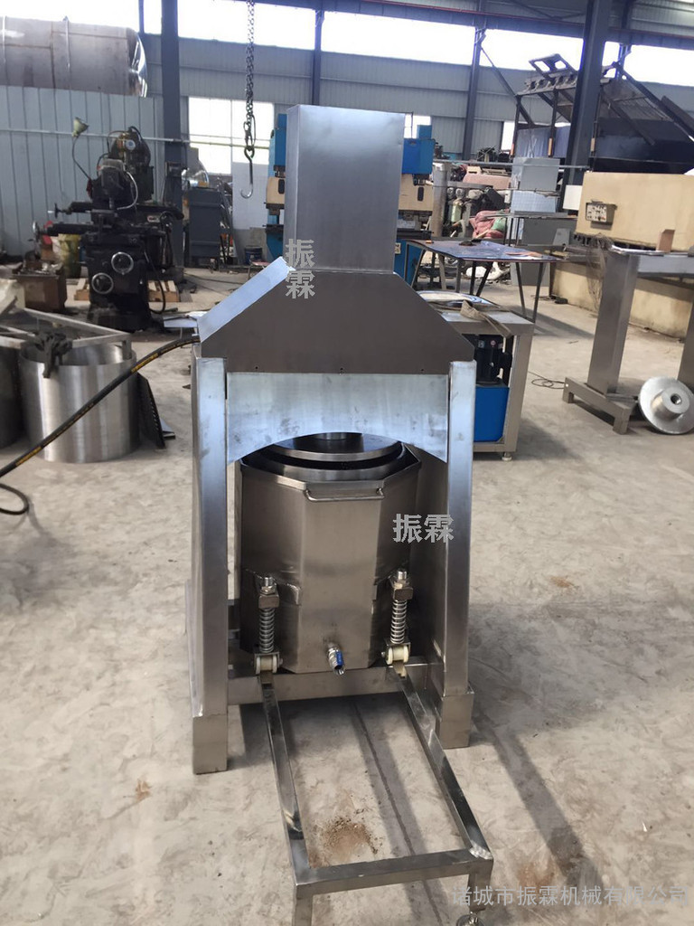 诸城振霖机械全自动压榨机,压料盘采用特殊工艺,能保证压料板下压式的连续和稳定,有效保证物料脱水的均匀程度,料框采用一次性成型的工艺,内表面精细抛光,易于清洗消除卫生角落,确保不损坏物料组织结构跟出料的干净,压料盘和料桶都是由不锈钢材质制作,整机操作面板可根据客户要求选择按钮式和PLC电脑显示屏,结构简单,坚固耐用,维修方便,压力大,生产效率高,有效节省耗能。