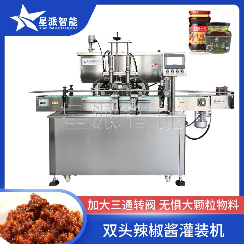 灌装机采用活塞式灌装原理,适用于调味品中带颗粒并且浓度较大的辣椒酱、豆瓣酱、花生酱、香菇酱、果酱、牛油火锅底料、红油火锅底料、虾酱等较为粘稠酱类的灌装。