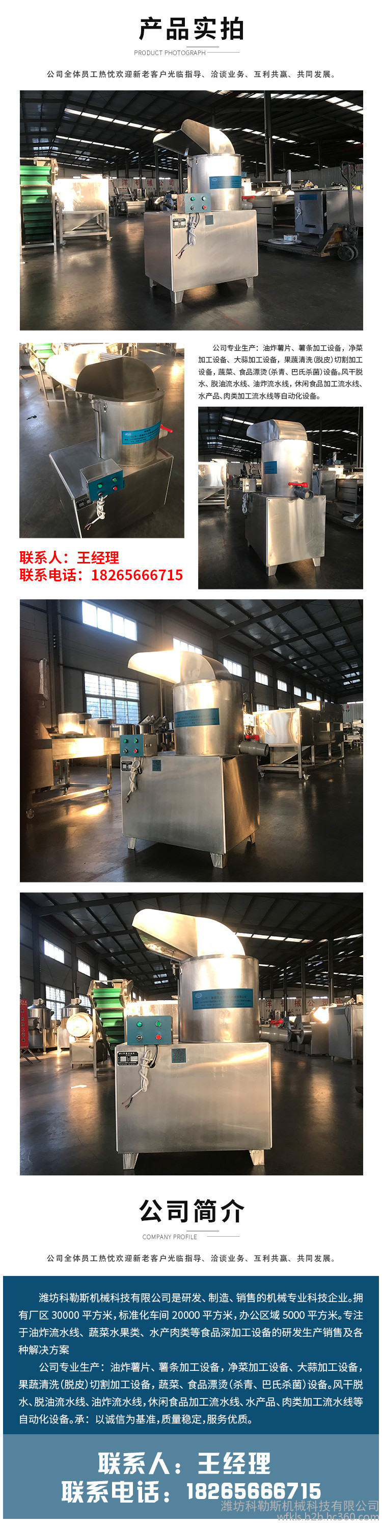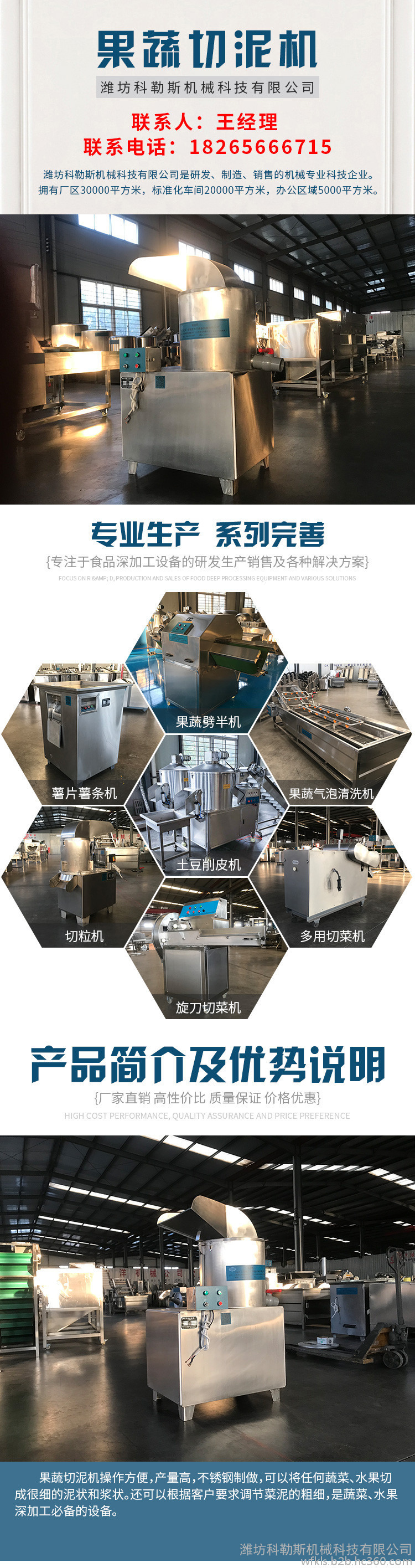 操作方便,产量高,不锈钢制做,可以将任何蔬菜、水果切成很细的泥状和浆状。还可以根据客户要求调节菜泥的粗细,是蔬菜、水果深加工必备的设备。