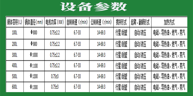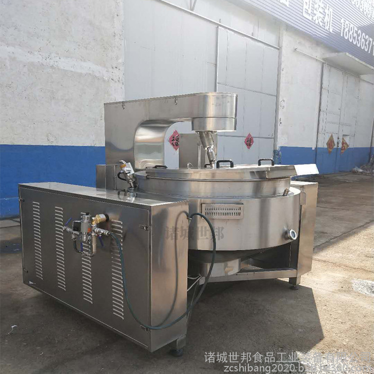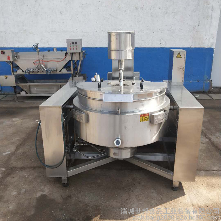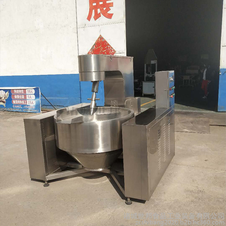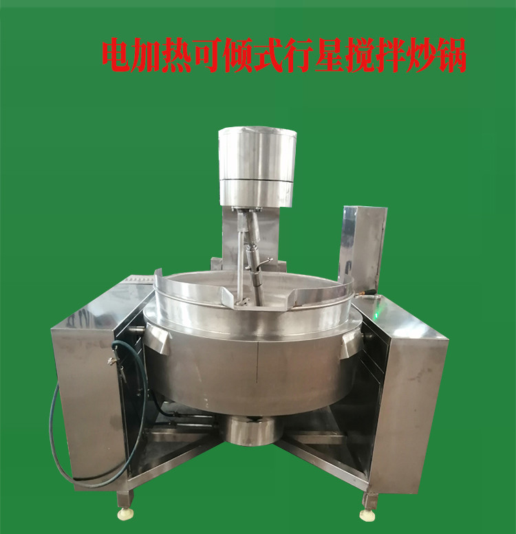 行星搅拌炒锅体为一次冲压成型的半球形不锈钢锅体,采用蒸汽、液化气、天然气等加热形式,搅拌方式采用特殊的倾斜式传动,使用的行星式搅拌器与锅体充分接触,实现传动公转与自转的不整数传动比,使锅内无搅拌死角。使用先进的传动与密封结构,使传动部分与锅内洁净、卫生。采用变频调速动力,运行更平稳。另本机采用液压升降,翻锅运料,免拆装搅拌器,节省人力,降低劳动强度,是性能优良的食品加工设备。