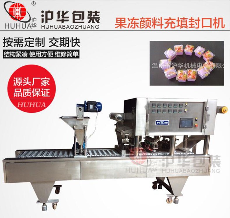 温州沪华机械生产的乳制果冻灌装封口机,灌装封口机,凉粉灌装封口机包装设备。具有操作简便,性能稳定,易于维护保养.既可以单机使用,也可接入生产流水线使用。