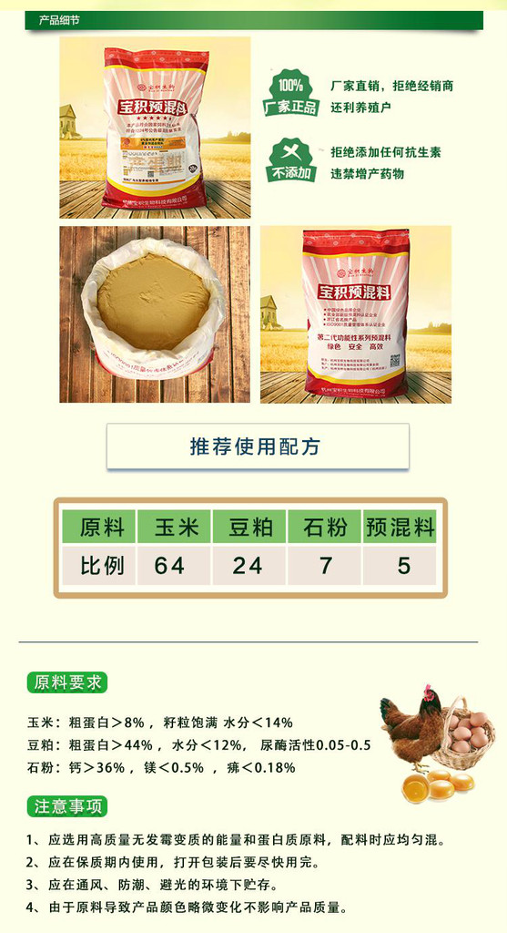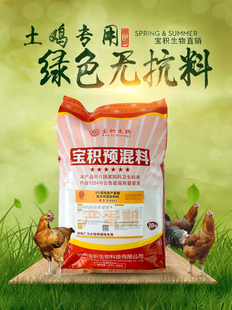 宝积生物专业研发土鸡蛋鸡专用预混料17年,天然绿色无抗,宝积预混料团队竭诚为您供应**高效无抗的绿色预混料