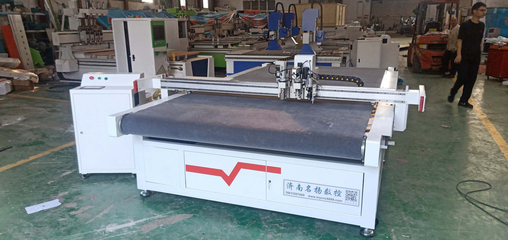 7、配置振动刀、拖刀、圆刀(可选配主动轮刀、 气动圆刀)等多种刀具及绘图笔工具,视不同材料的不同需求,可实现诸如写字画线、虚线裁切、半断裁切、全断裁切等功能,可裁切如海绵复合材料、 XPE材料、丝圏脚塾、度革、软玻璃、硅胶、橡胶材料等各种柔性材料。