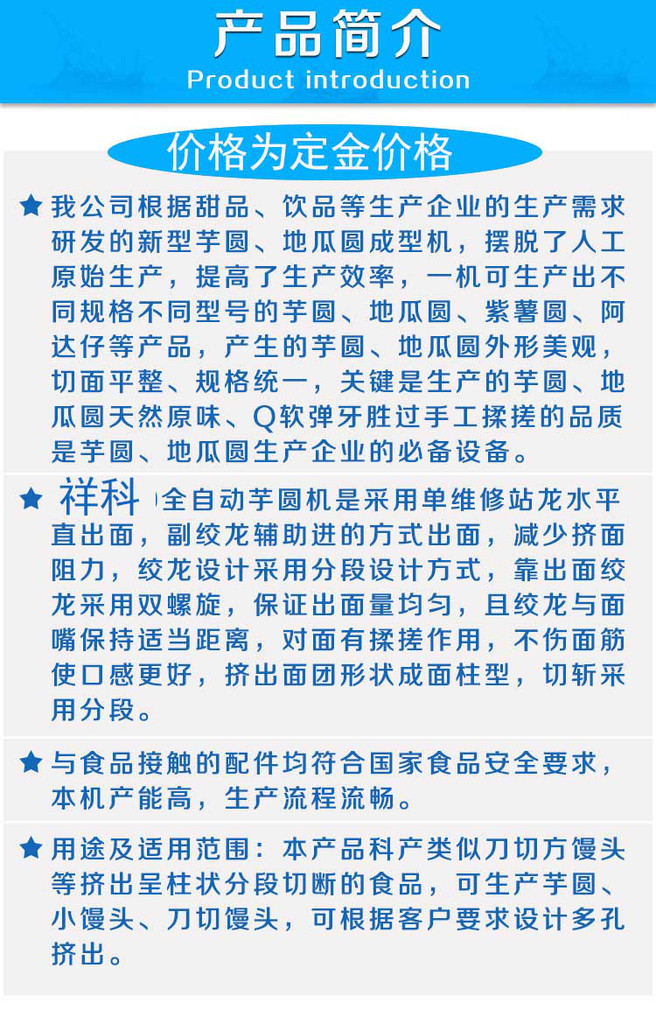 1. 粉圆机采用圆盘挤压搓圆成型技术,产品外形整齐美观, 大小均匀。