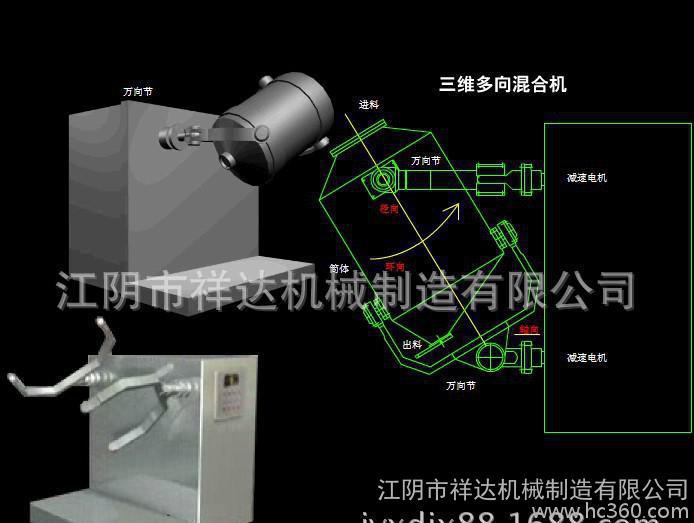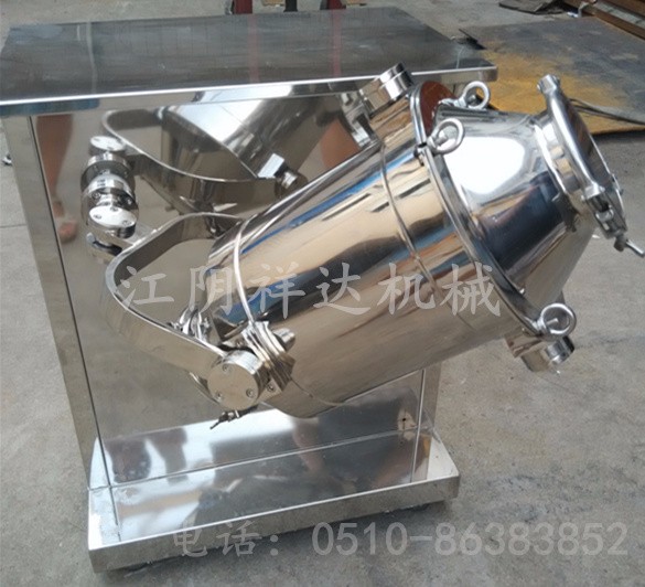 不锈钢三维混料机 是一种新型、高效、高精度的混合设备,它适用于化工、食品、医药、饲料、陶瓷、冶金等行业的粉料或颗料状物料的混和。该机结构合理、简单、操作密闭,进出料方便,